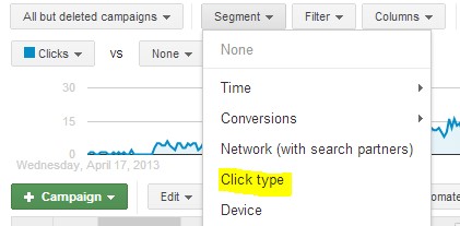 To view how your extensions are performing, you can separate out your click-type under the segment tab, giving you analytics for the number of clicks/ impressions on the ad text headline and all extensions being used.