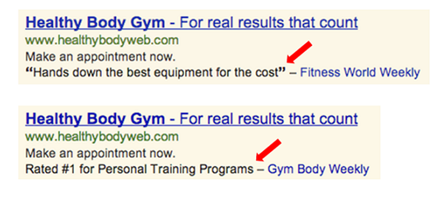 There are several kinds of ad extensions available, to name a few: location extensions, call extensions, and review extensions. Review extensions in particular are a way to highlight reviews left by customers on websites other than your own.